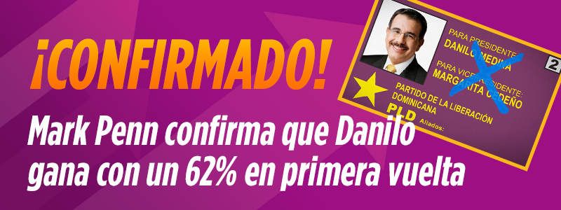 Los actuales resultados de Mark Penn confirman lo que está pidiendo el país: Danilo 4 años más, y este imbatible porcentaje es una muestra inequívoca de que el domingo 15 de mayo el PLD y aliados ganan en primera vuelta!